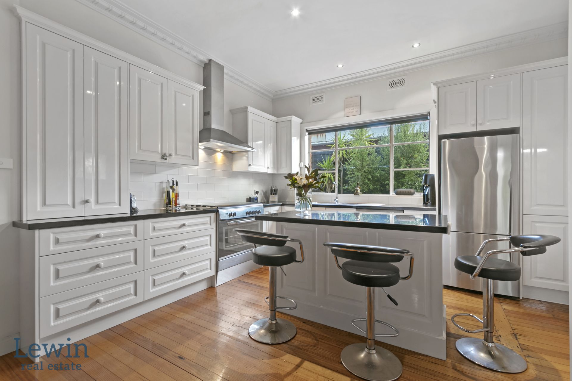 Instantly appealing with its timeless facade and curved & secure portico entry, the home opens to interiors that have been meticulously maintained. Among its standout features are a formal lounge with gas fireplace, a separate dining room and a timelessly stylish kitchen with premium appliances and glossy black bench tops – including a central island.