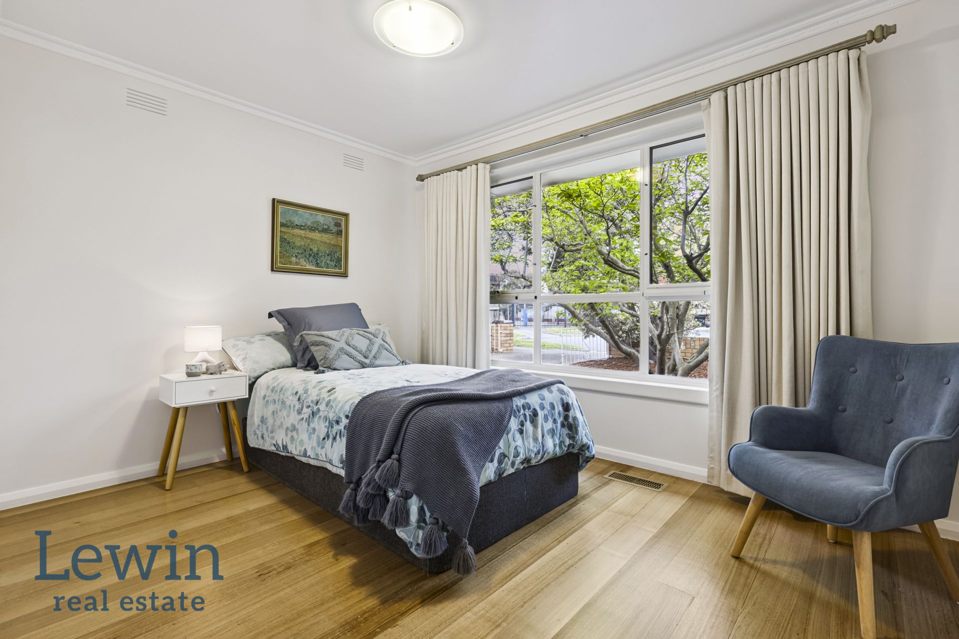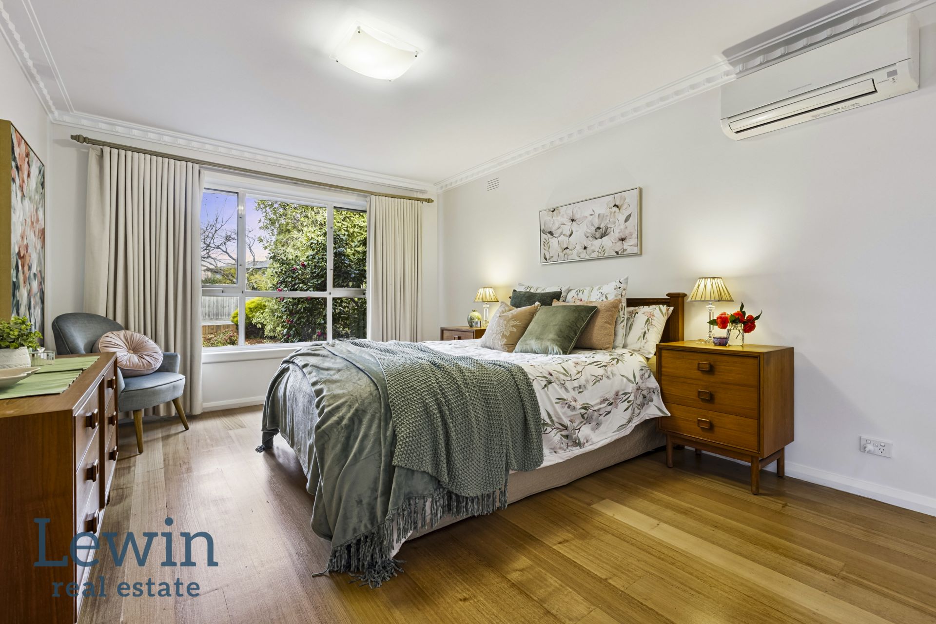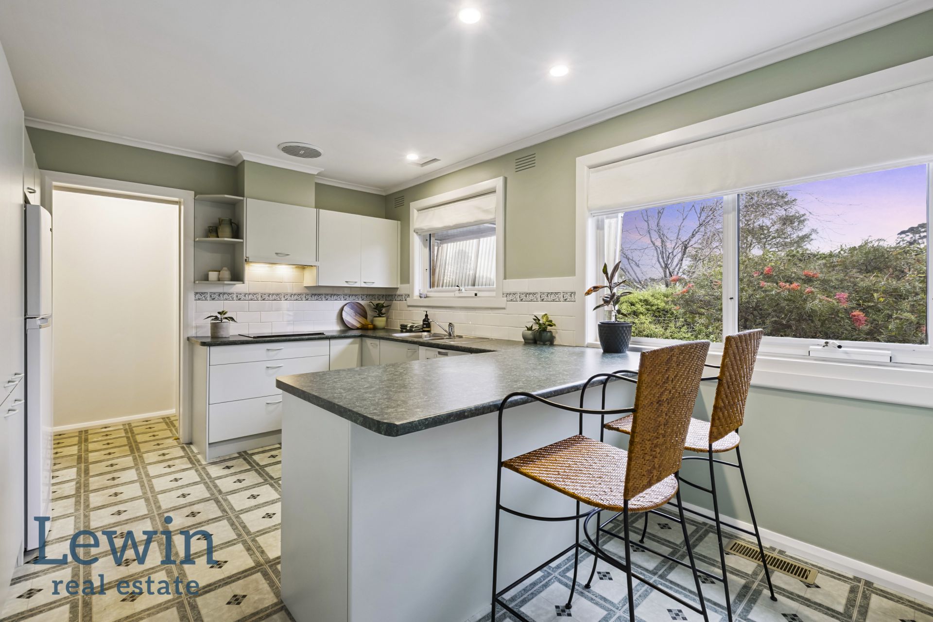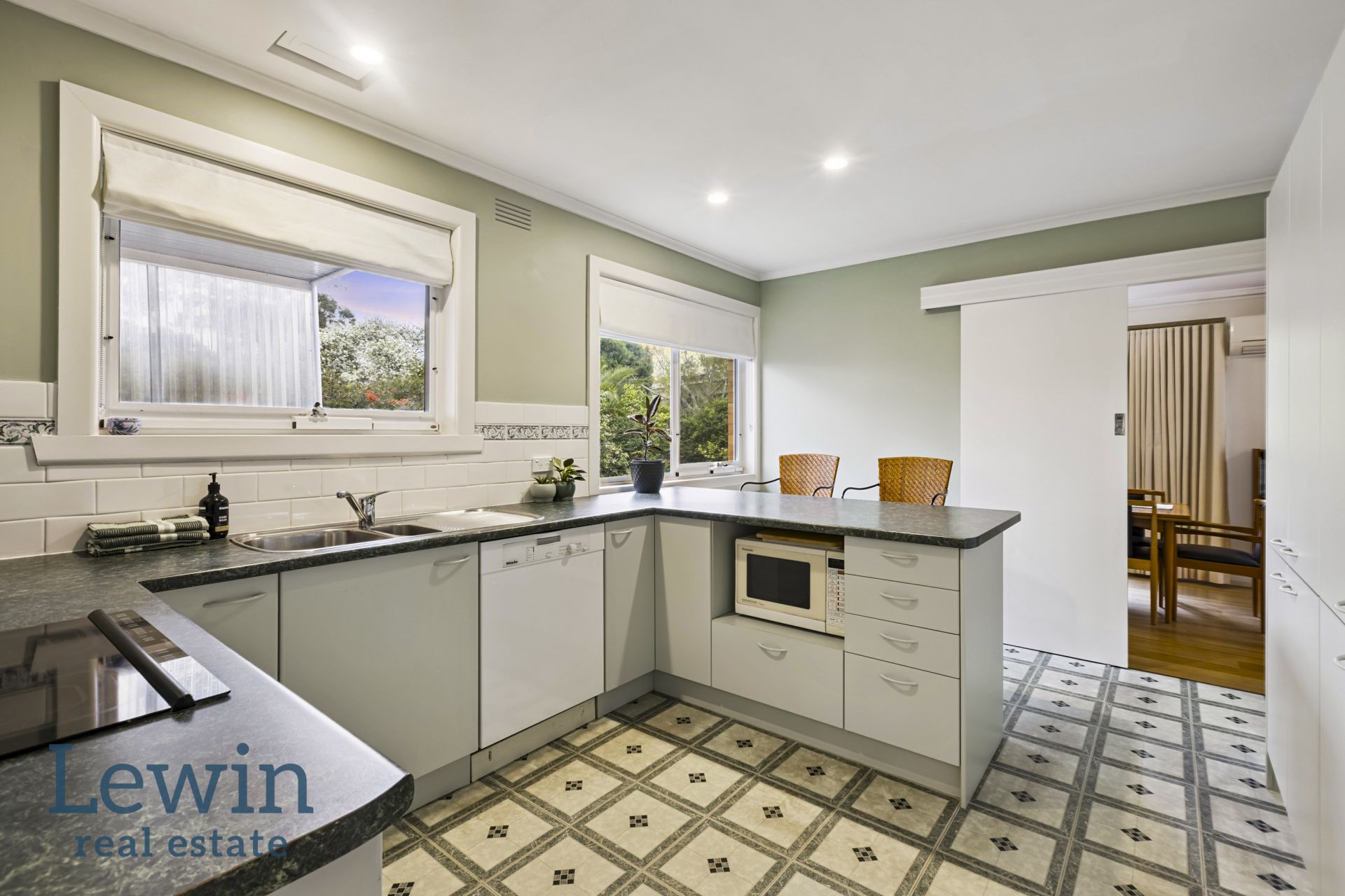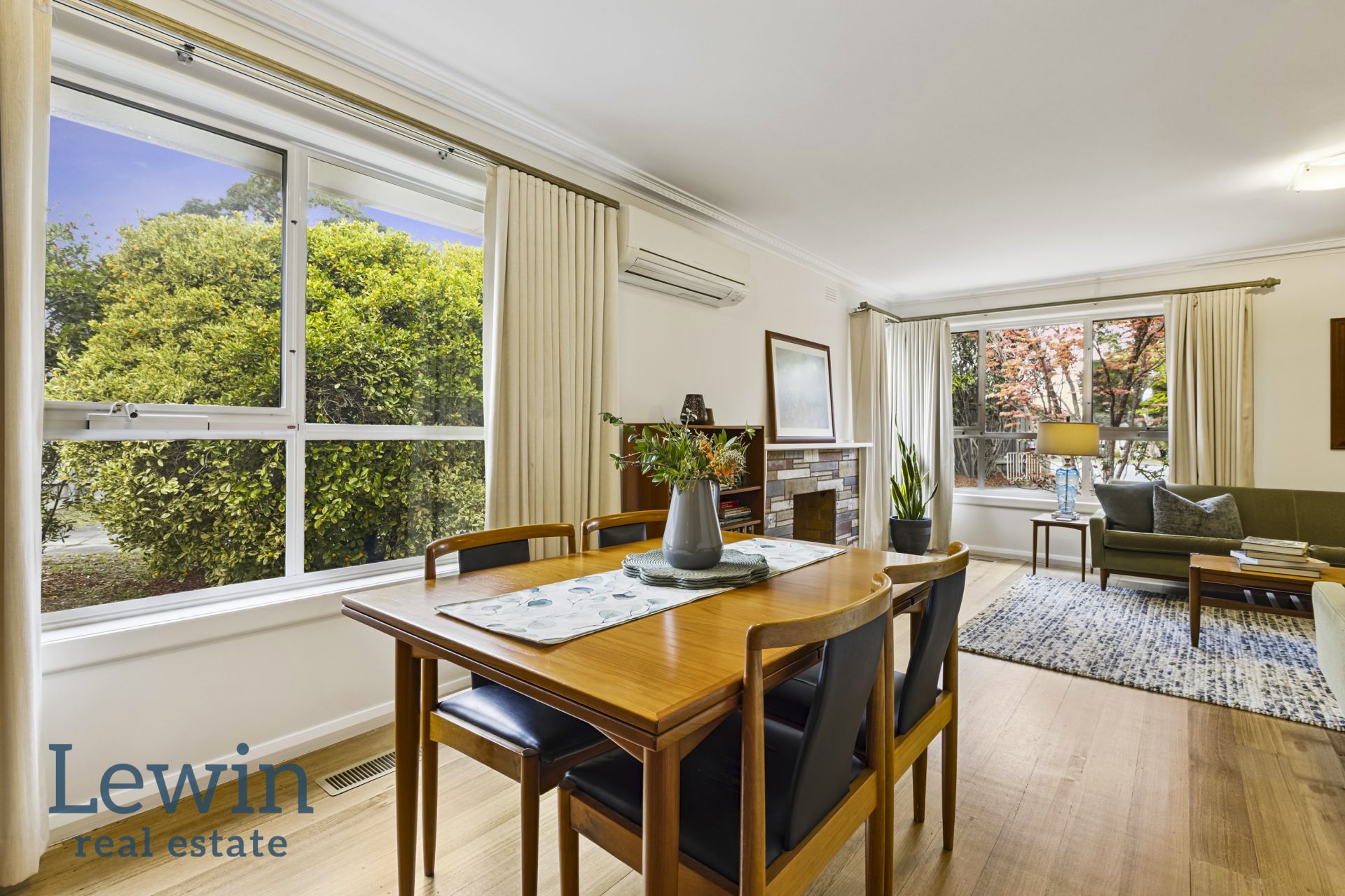 Recently refreshed with crisp paint and the original hardwood floors newly polished, the accommodation is comfortable and inviting while still giving the option for the new owners to stamp their own personal style. Welcomed by a wide entrance, the floorplan flows through to the generous living and dining room which is flooded with light and features an open fireplace set in a stone surround. Enjoying views of the deep lawn and established garden, the kitchen offers a very functional footprint with ample storage, an induction cooktop and Miele dishwasher – the breakfast bar perfect for easy meals.