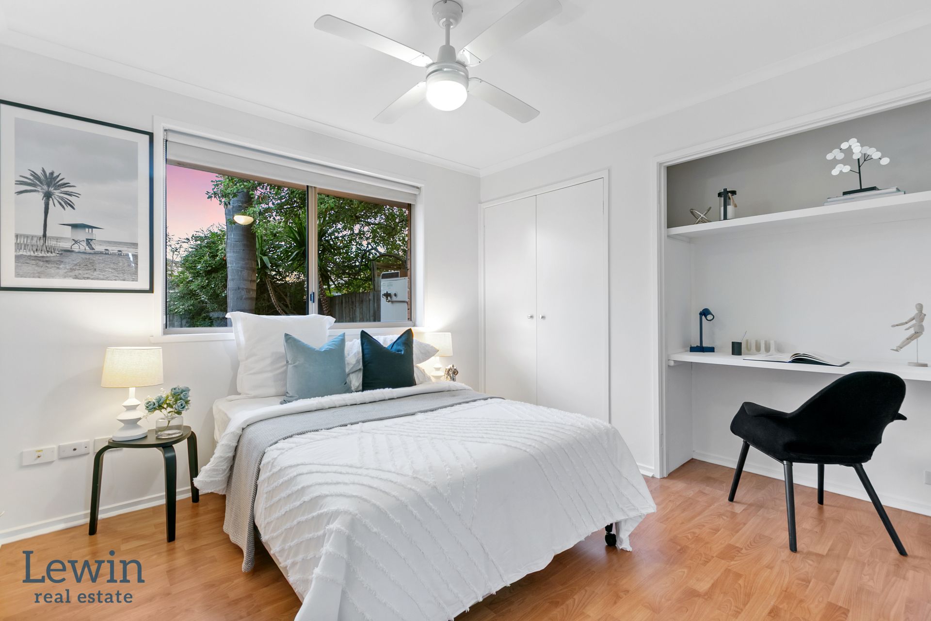 The three superbly proportioned bedrooms, all with fitted wardrobes, include an impressive main with crisp ensuite, while a study nook in another bedroom is a practical inclusion.