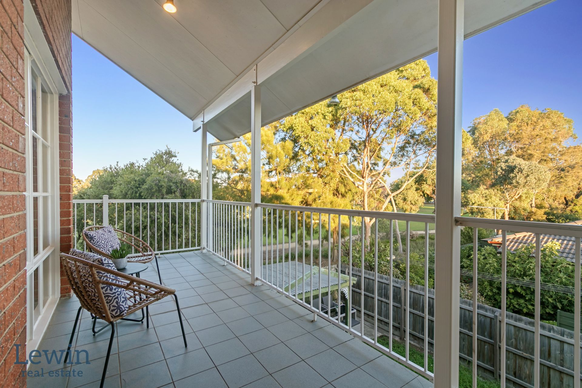 Large upstairs balcony overlooking the park