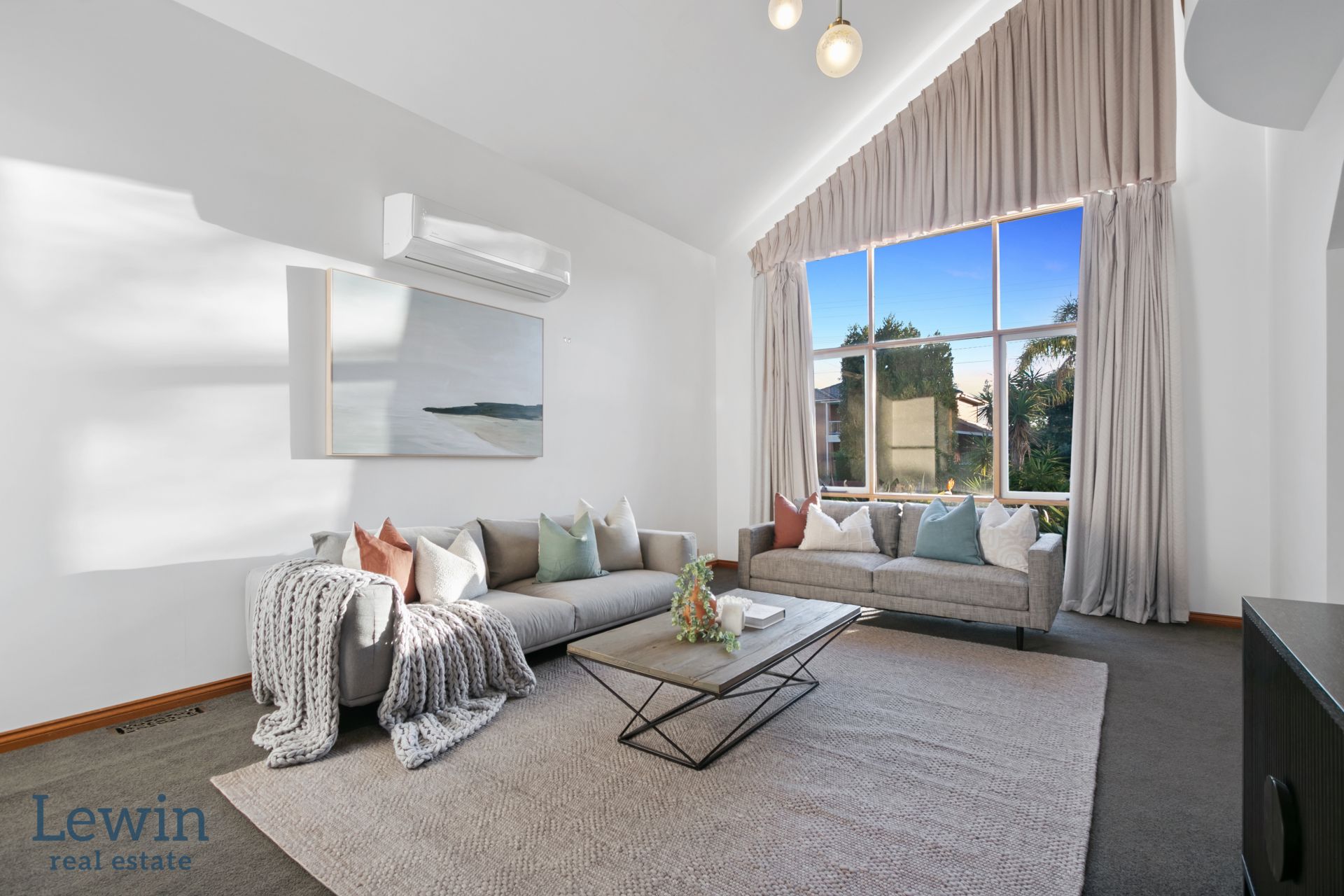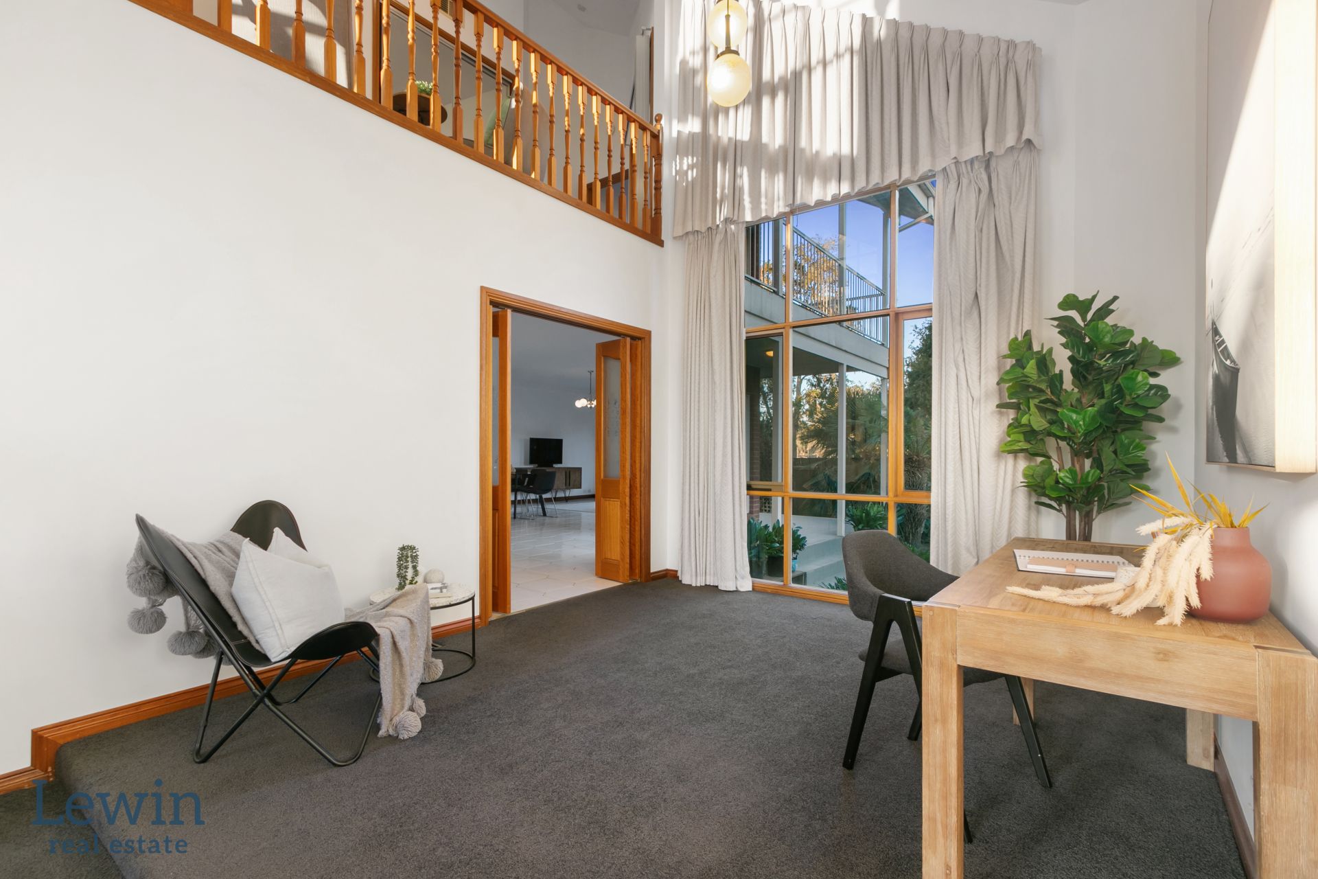 Soaring ceilings and large windows creating a light-filled, airy atmosphere