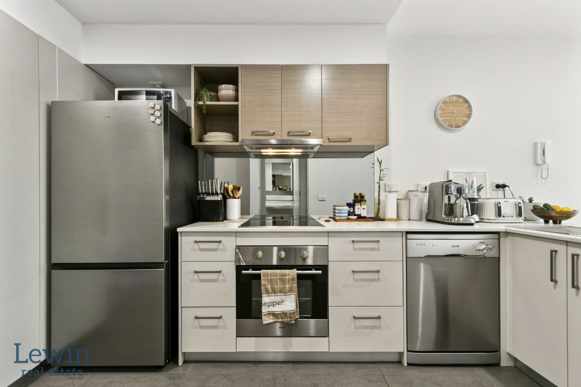 Accessed via secure intercom entry and with the ease of lift access up to the home and down to the basement parking & storage, the home is very liveable and desirably open plan. The all-electric stone kitchen boasts stainless steel appliances including a full-size dishwasher, plenty of cupboard space along with a mirrored splashback enhancing the feeling of light & space. Further on, the living and dining zone is flushed with morning sunshine and spills out to a good-sized balcony – the perfect spot for the day’s first coffee.