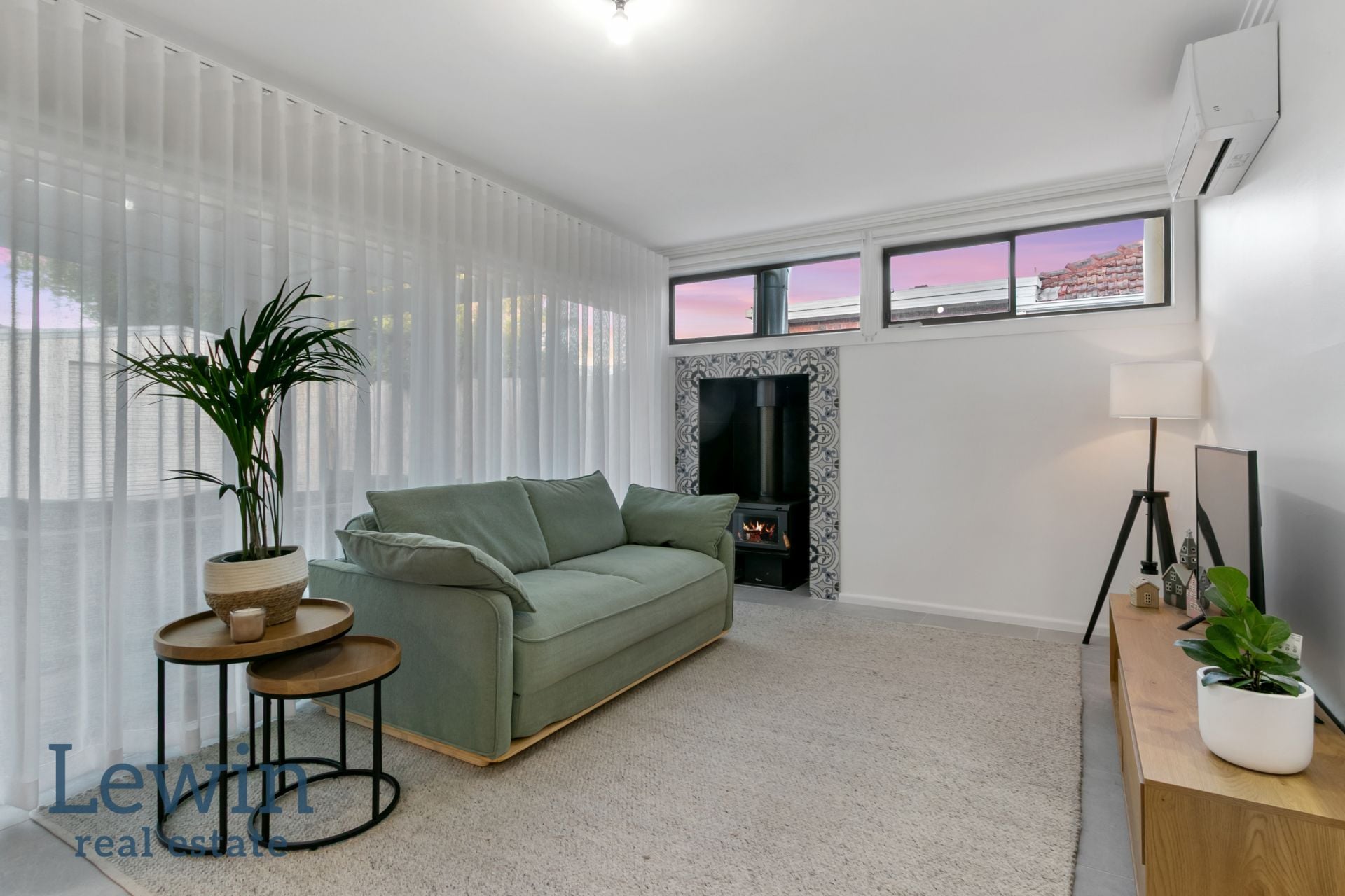 An auto gate rolls back to give access to the spacious front garden, then once inside the light-filled interiors are enhanced by hardwood floors, plush carpet and lofty ceilings – textural stucco and picture rails adding more charm. Floaty sheers give a delicate softness to the open plan living and dining zone which flows seamlessly into a contemporary kitchen showcasing chic stone benchtops, premium Bosch appliances and ample cupboard space. Stepping down, a family zone is warmed by a wood-fire and gives access out to the sheltered alfresco deck and a sundrenched north-facing garden.